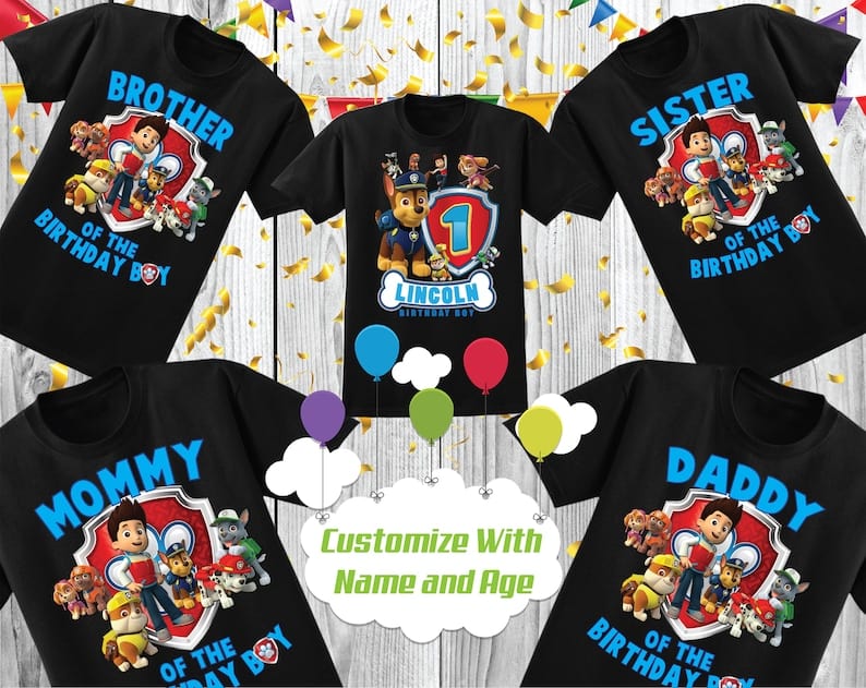 Paw Patrol Birthday T Shirt With Custom Name Personalized Etsy Hong Kong